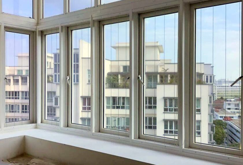 Mounted onto the wall using cables, fixed invisible grilles, as their name suggests, cannot be moved after installation. They are usually used for balconies without existing window structures or in homes where additional structures cannot be installed like in certain condominiums. Do note that you will need a solid concrete wall to install fixed ones. They cannot be installed on fake walls or walls made from materials not as sturdy like wood for instance.